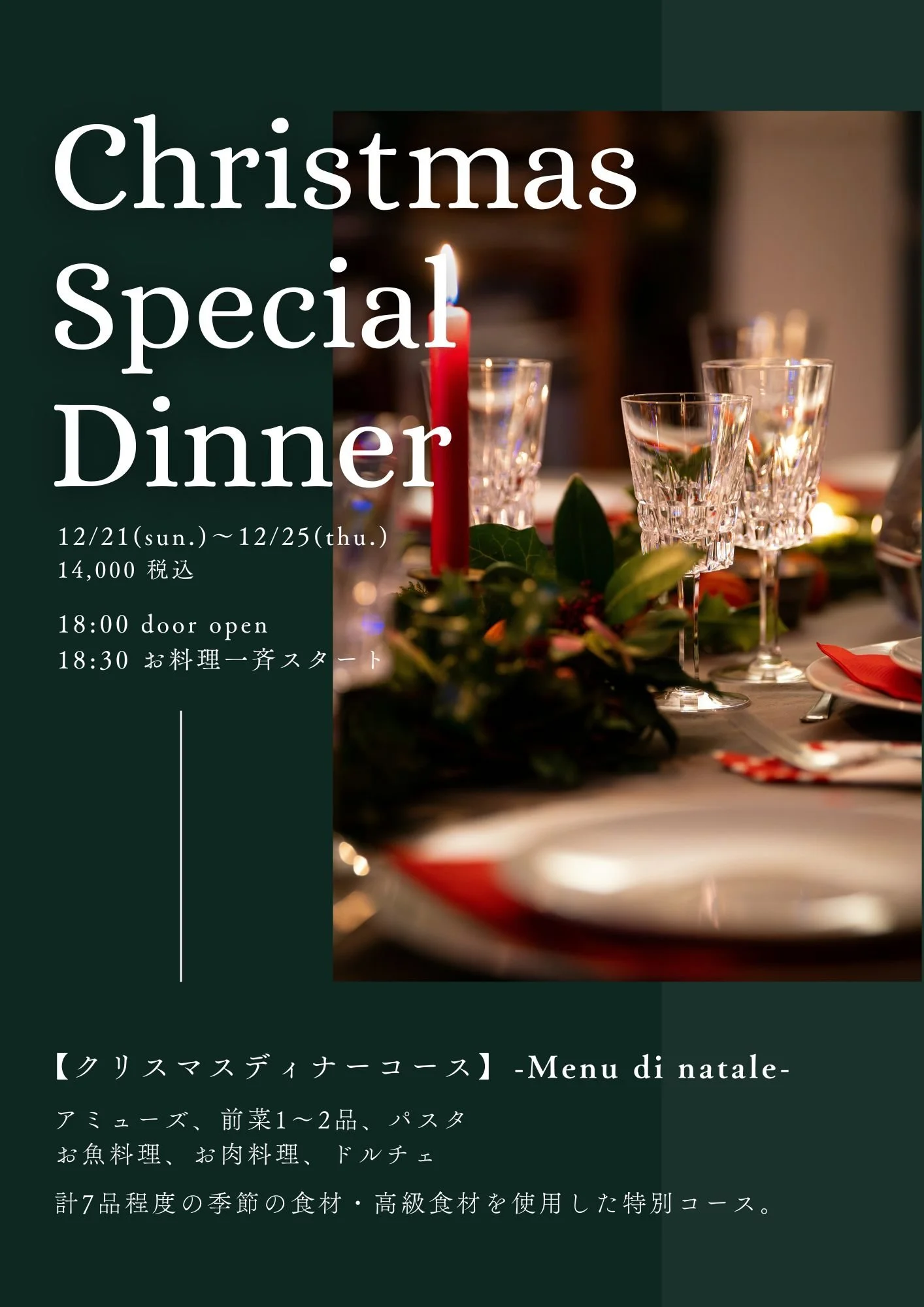 今年もクリスマススペシャルディナーをご用意いたします😊