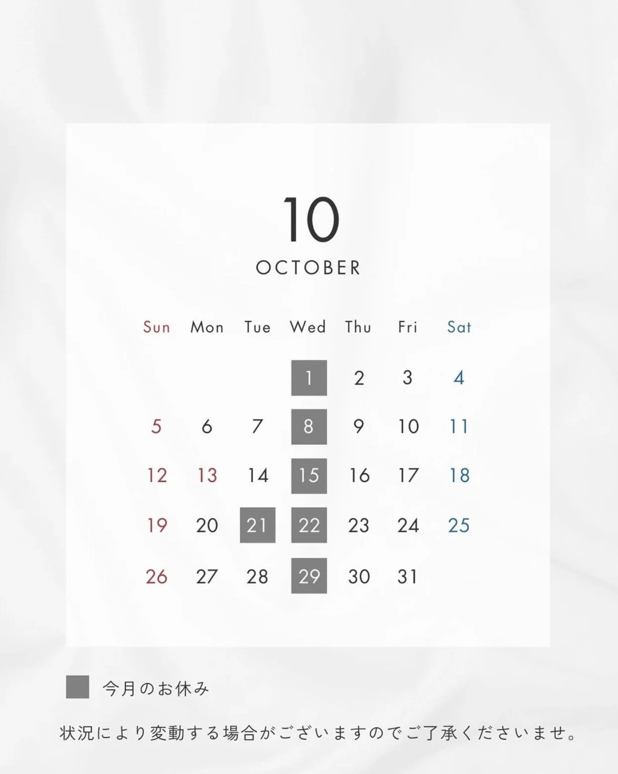 下記、10、11月のカレンダーと合わせてご確認をお願いいたします↓