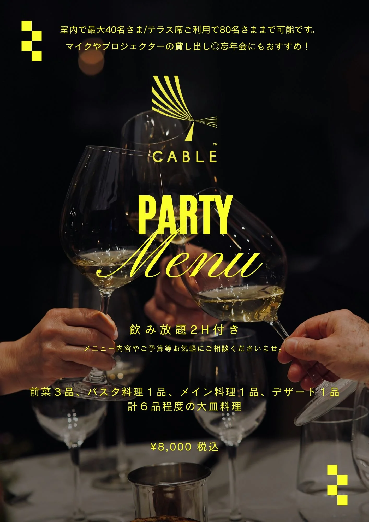 CABLEでは、団体さま向けとしてイベントの打ち上げや歓迎会など、お客様に合わせたプランで柔軟に対応しております。