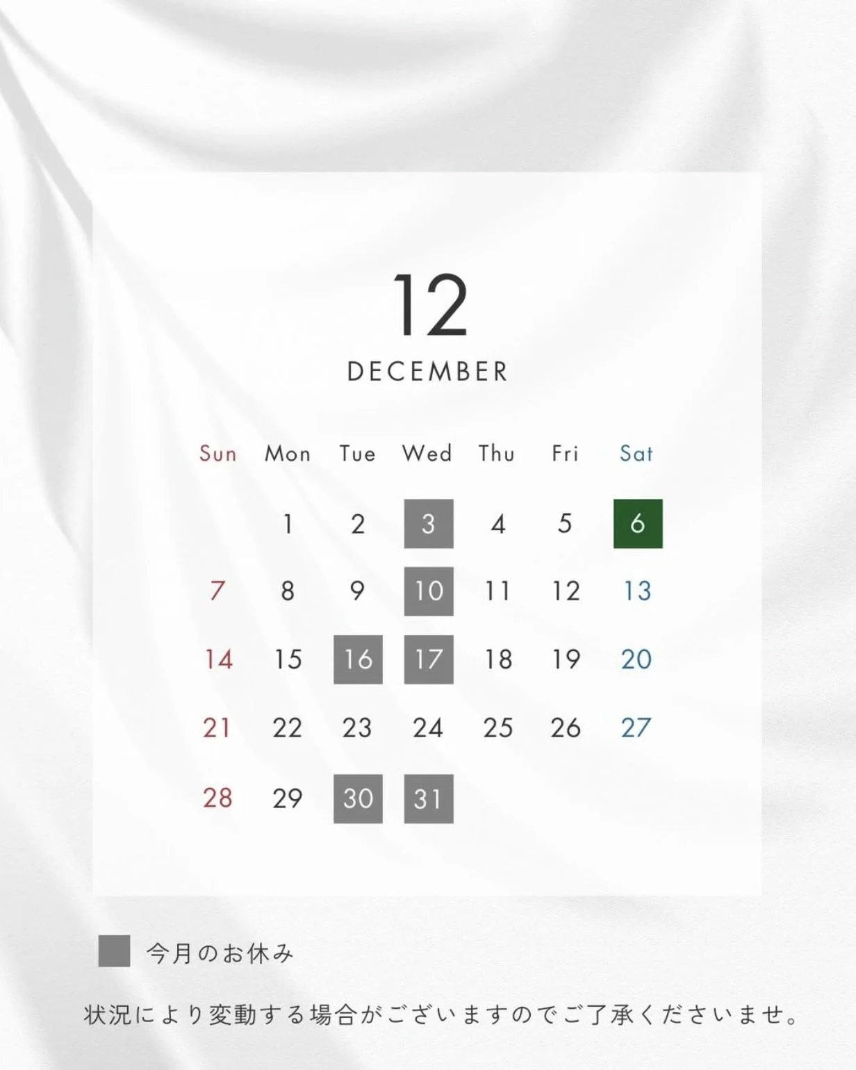 下記、12月のカレンダーと合わせてご確認をお願いいたします↓